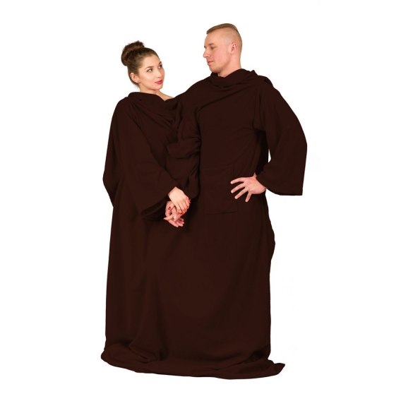 Dzięki kocykowi możecie być ze sobą blisko, siedzieć w ciepełku i np. swobodnie podjadać przekąski. Gadżet ten sprawiedliwie rozdziela gruby polar na dwie osoby tak, aby nikt nie narzekał na odkryte stopy. Posiada trzy długie rękawy, w tym jeden wspólny, dzięki któremu można trzymać się za ręce. Dodatkowo posiada dwie kieszenie na drobne rzeczy - po jednej dla każdego.