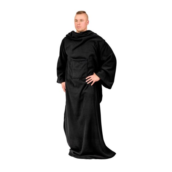 Kocyk Szlafrok Czarny koc z rękawami polar POLSKI