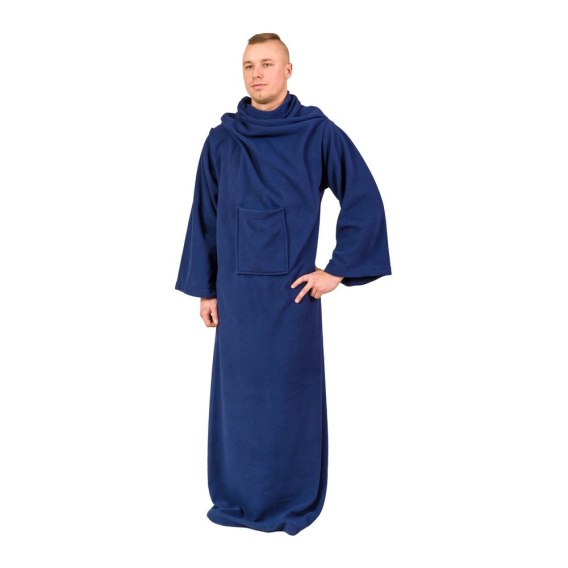 Kocyk Szlafrok Granatowy koc z rękawami polar