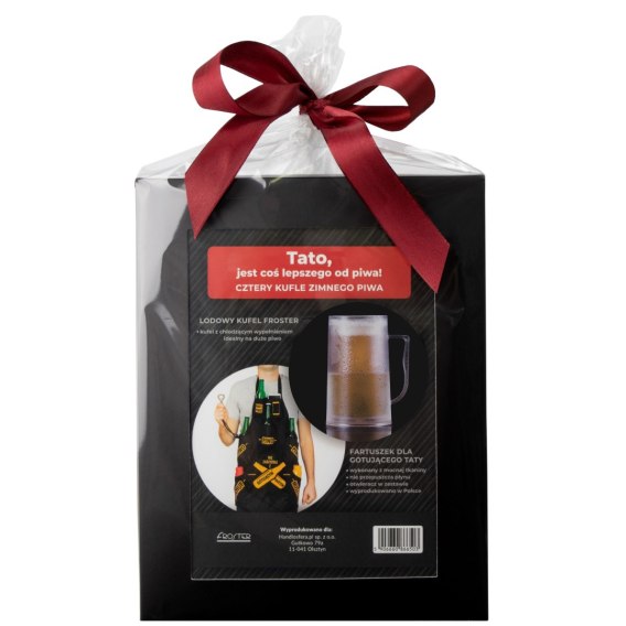 Lodowy kufel do piwa i fartuszek z kieszeniami dla Taty.