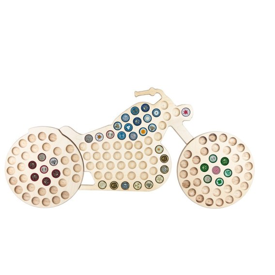 Łapacz Kapsli Motocykl to niezwykła dekoracja ścienna, niczym mapa piwna, której wygląd zmienia się wraz z upływem czasu, nadając wnętrzu osobisty i wyjątkowy charakter.