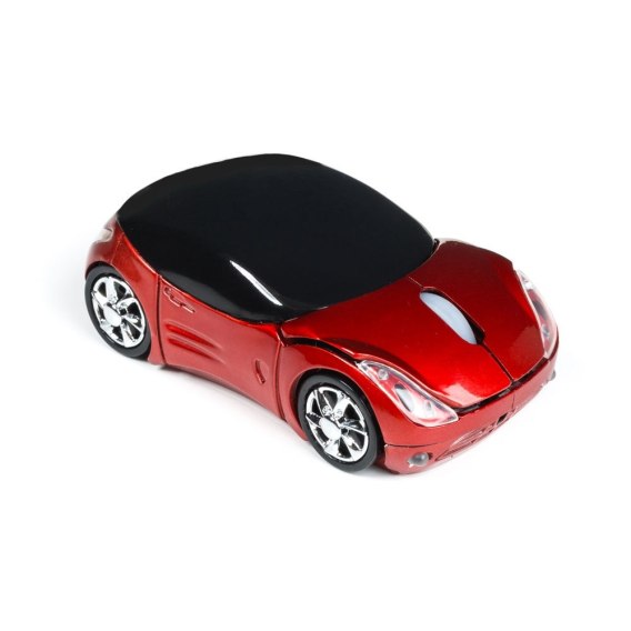 Bezprzewodowa mysz komputerowa w kształcie samochodu wyścigowego.