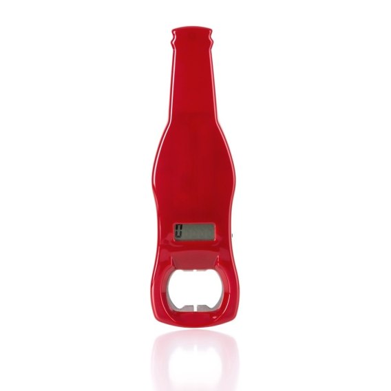 Nasz otwieracz został zaprojektowany po to, aby stać się idealnym prezentem dla faceta. Jego smukły kształt przywołuje na myśl butelkę zimnego piwka, czerwony lakier lśni niczym sportowy samochód, a trzycyfrowy wyświetlacz licznika gwarantuje, że impreza nie skończy się zbyt szybko.