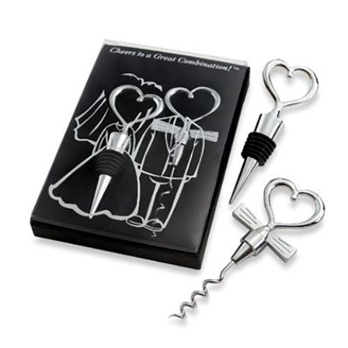 Zestaw z korkociągiem i zatyczką w kształcie serca.
