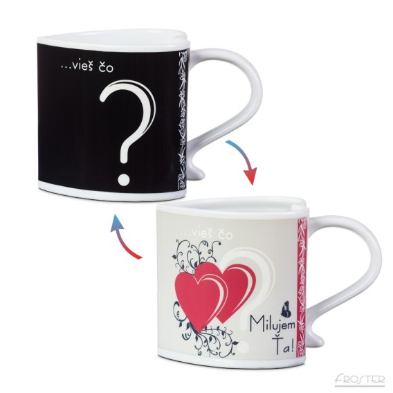 Nadruk wokół całego produktu. Napis na produkcie: Vieš čo? Milujem Ťa! Produkt w słowackiej wersji językowej.