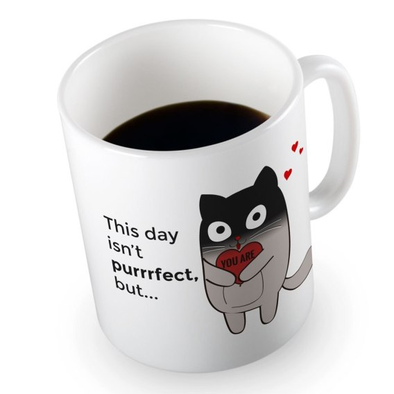 Nadruk jednostronny. Napis na produkcie: This day isn't purrrfect, but... you are.