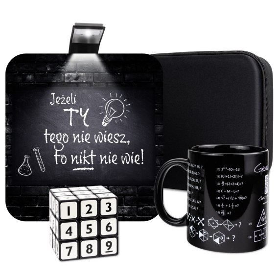 Zestaw Prezentowy dla Geniusza - Kubek Geniusza, Sudoku, Lampka Czytelnika