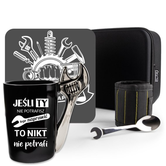 Czy znasz kogoś, na kogo zawsze możesz liczyć? Kogoś, kto z uśmiechem na twarzy naprawia każdą usterkę i nigdy nie zostawia cię z problemem? Ten wyjątkowy prezent to świetny sposób, aby pokazać, jak bardzo doceniasz jego umiejętności i gotowość do działania. To pełen humoru i ciepła upominek, który podkreśli, jak niezastąpioną „złotą rączką" jest dla ciebie ta osoba.