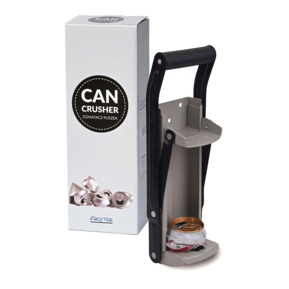 Ponieważ noszenie za każdym razem wielkiego worka wypełnionego puszkami nie jest zbyt przyjemne, pozwoli on znacznie ograniczyć ilość zajmowanych przez ten rodzaj śmieci miejsca. Wystarczy jeden prosty ruch rączką, by mocno zgnieść nieporęczną puszkę. Zgniatacz ma uchwyt przeznaczony do zawieszenia na ścianie i wbudowany otwieracz do butelek.