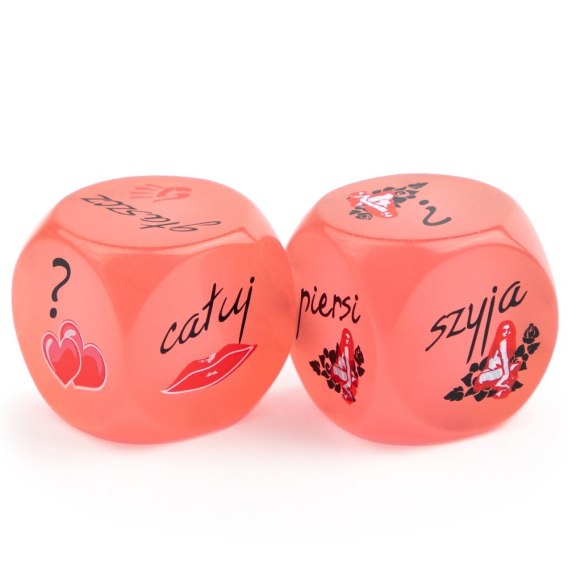 Pierwsza kość odpowiada częściom ciała, druga - nazwom pieszczot. Nie wymagają żadnych baterii ani innego źródła zasilania. Są większe niż zwykłe kostki do gry, dzięki czemu są bardziej czytelne. Napisy: pierwsza kość - Całuj, Głaszcz, Pieść, Łaskocz, Masuj, ?; druga kość - Piersi, Szyja, Pupcia, Uda, Buzia, ?